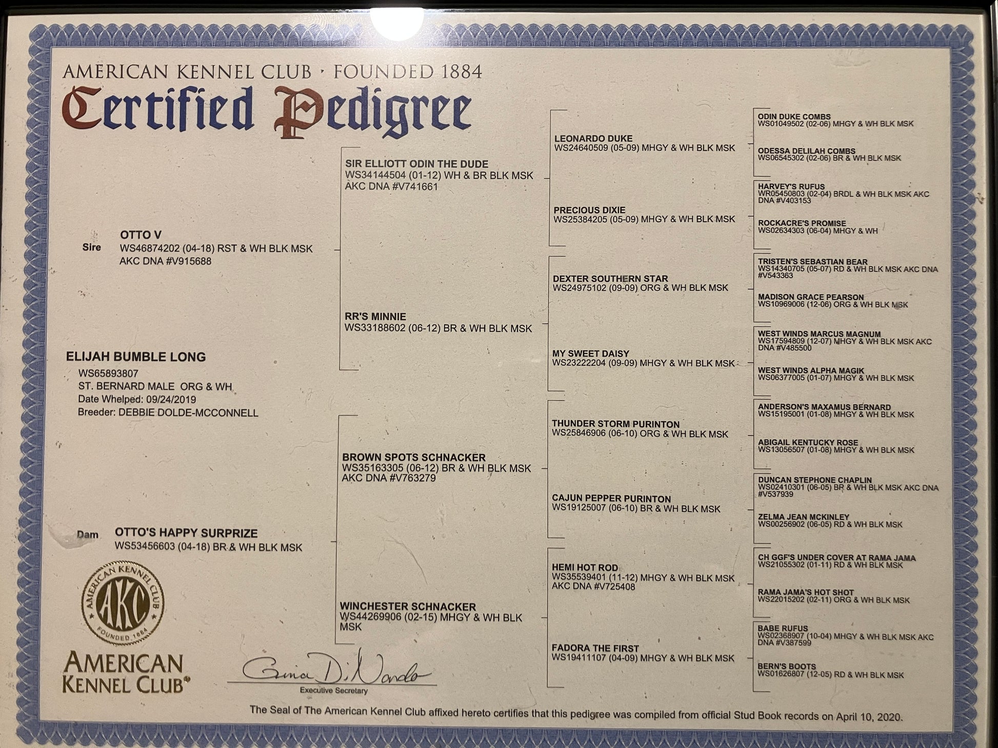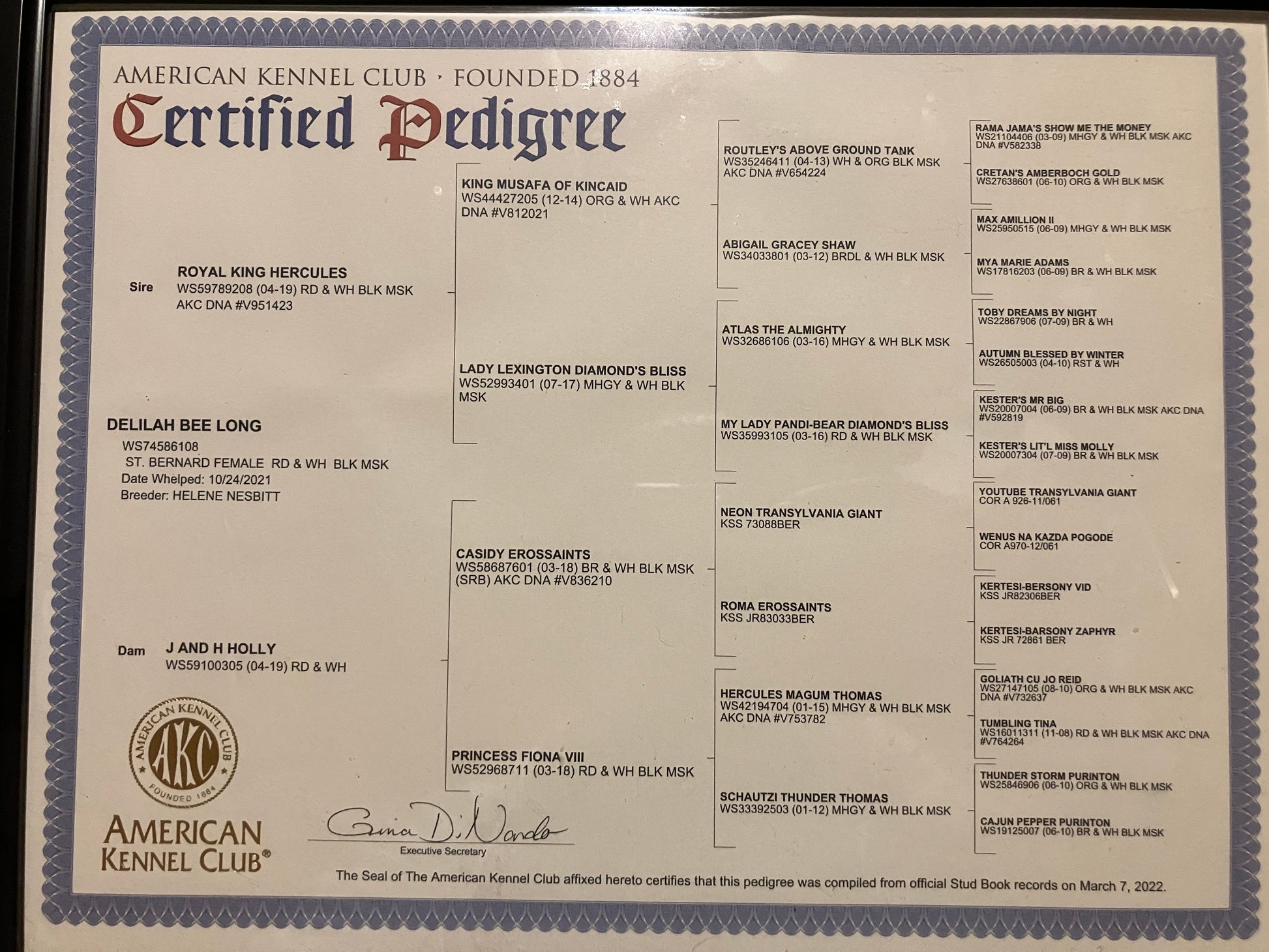 -Our next Saint Bernard litter's Father (Eli) and Mother (Delilah) are both of AKC Champion Bloodline.